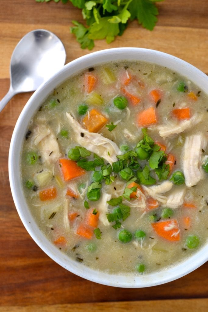 *percent daily values are based on a 2,000 calorie diet. It was so much fun to break into the crust with a fork (or a spoon), to reveal tender bites of chicken. This low carb chicken pot pie recipe has a creamy chicken filling in between buttery crust layers. The inspiration for this simple soup recipe obviously came from its namesake. Can chicken pot pie be made ahead?